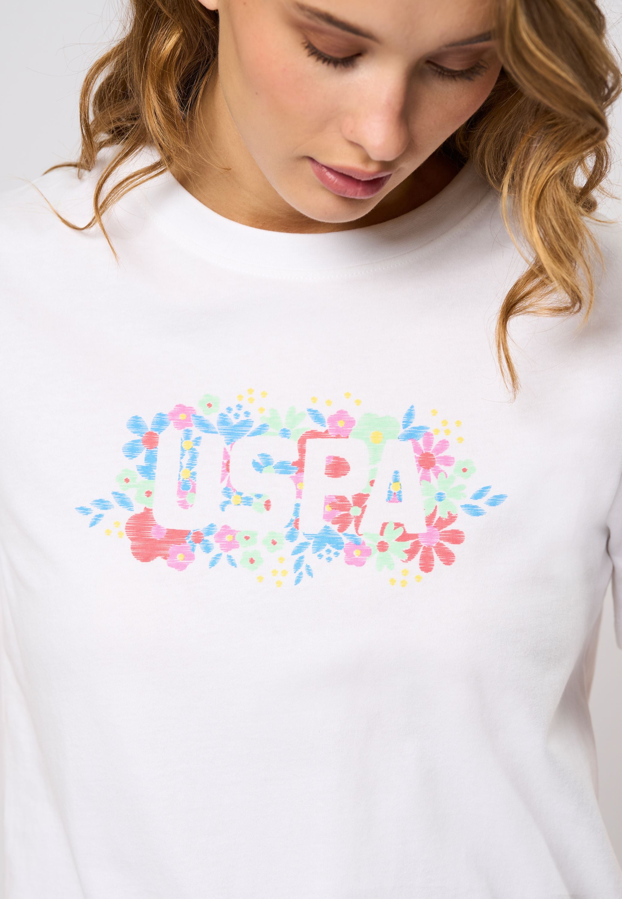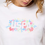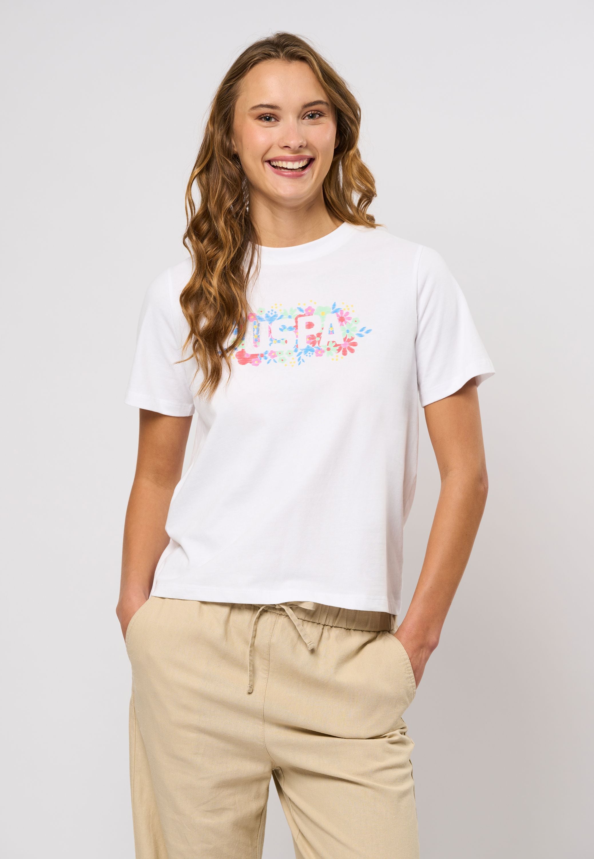 Haya er en klassisk T-shirt med rund hals. Det faverige USPA-tryk på brystet giver et friskt og feminint look, som er perfekt til sommerens garderobe. Haya er en alsidig T-shirt, som du let kan style med ethvert par jeans eller shorts.