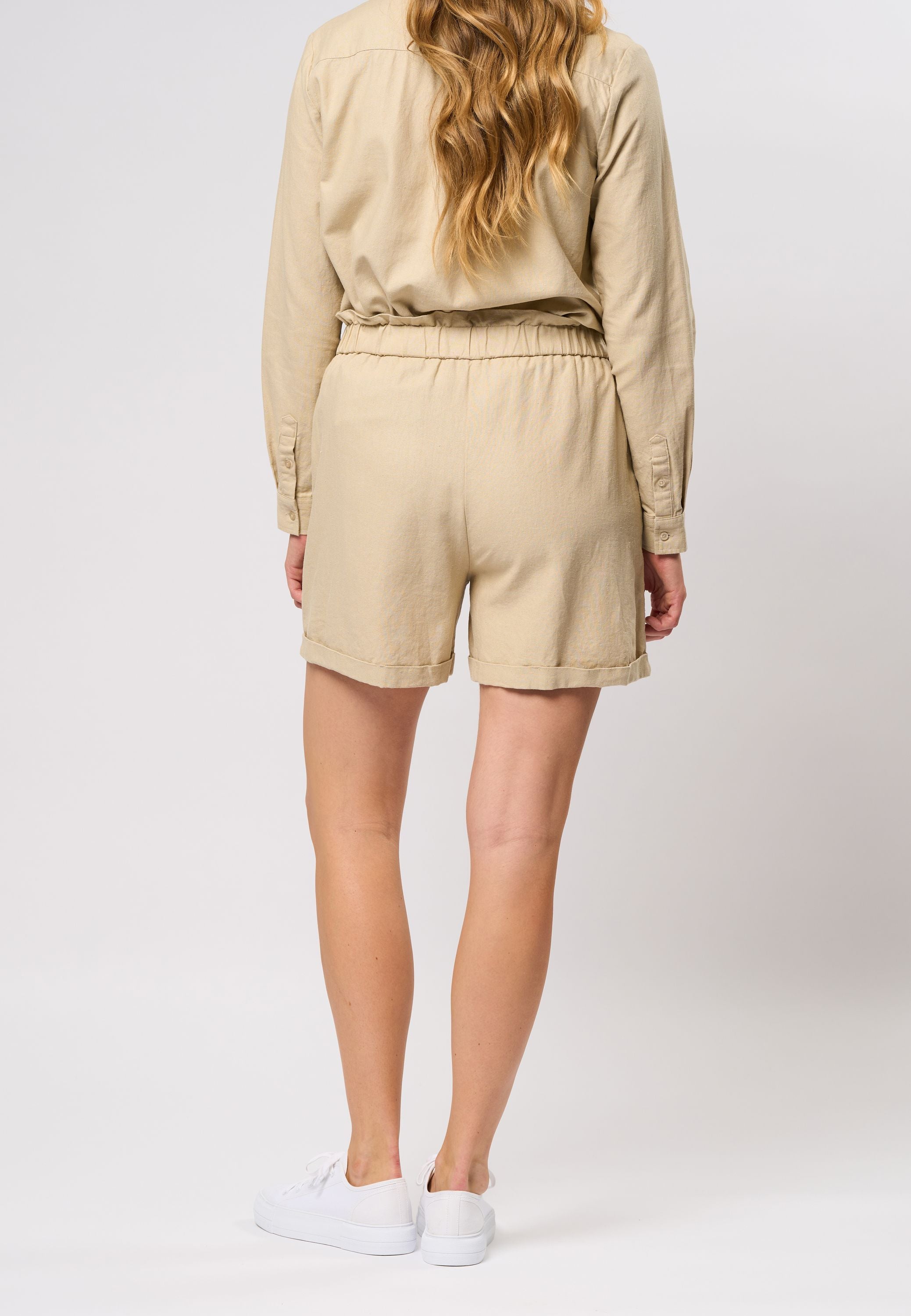 Hena shorts er en stilren og alsidig tilføjelse til din sommergarderobe. Shortsene er fremstillet i et let og åndbart hørmateriale, der sikrer maksimal komfort på varme dage. Den elastiske talje giver en behagelig pasform, mens de praktiske sidelommer tilføjer funktionalitet. Det tidløse design gør Hena perfekte til både afslappede hverdagslooks og sommerlige anledninger. Par Hena med den matchende hørskjorte Isa for et komplet sæt.