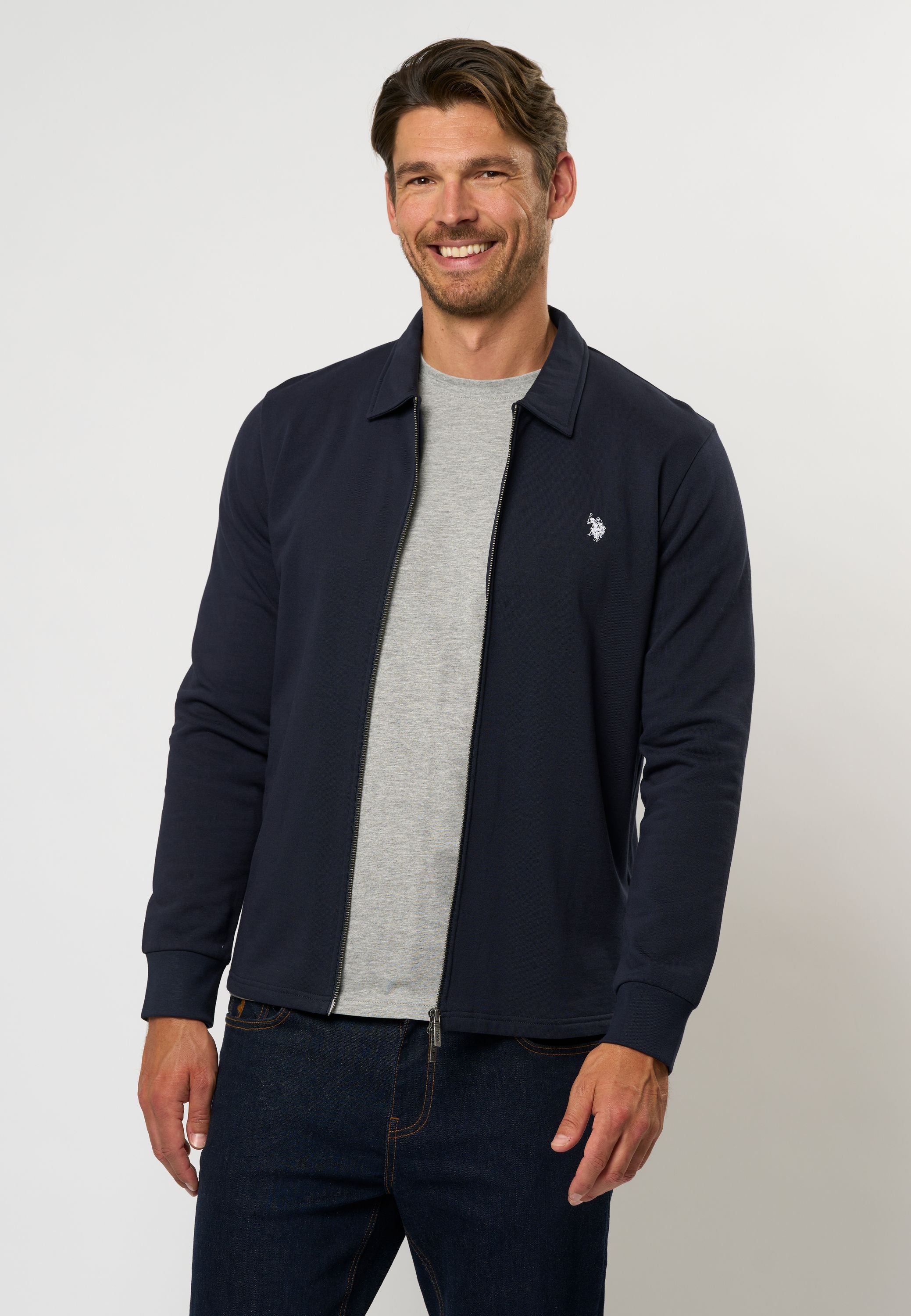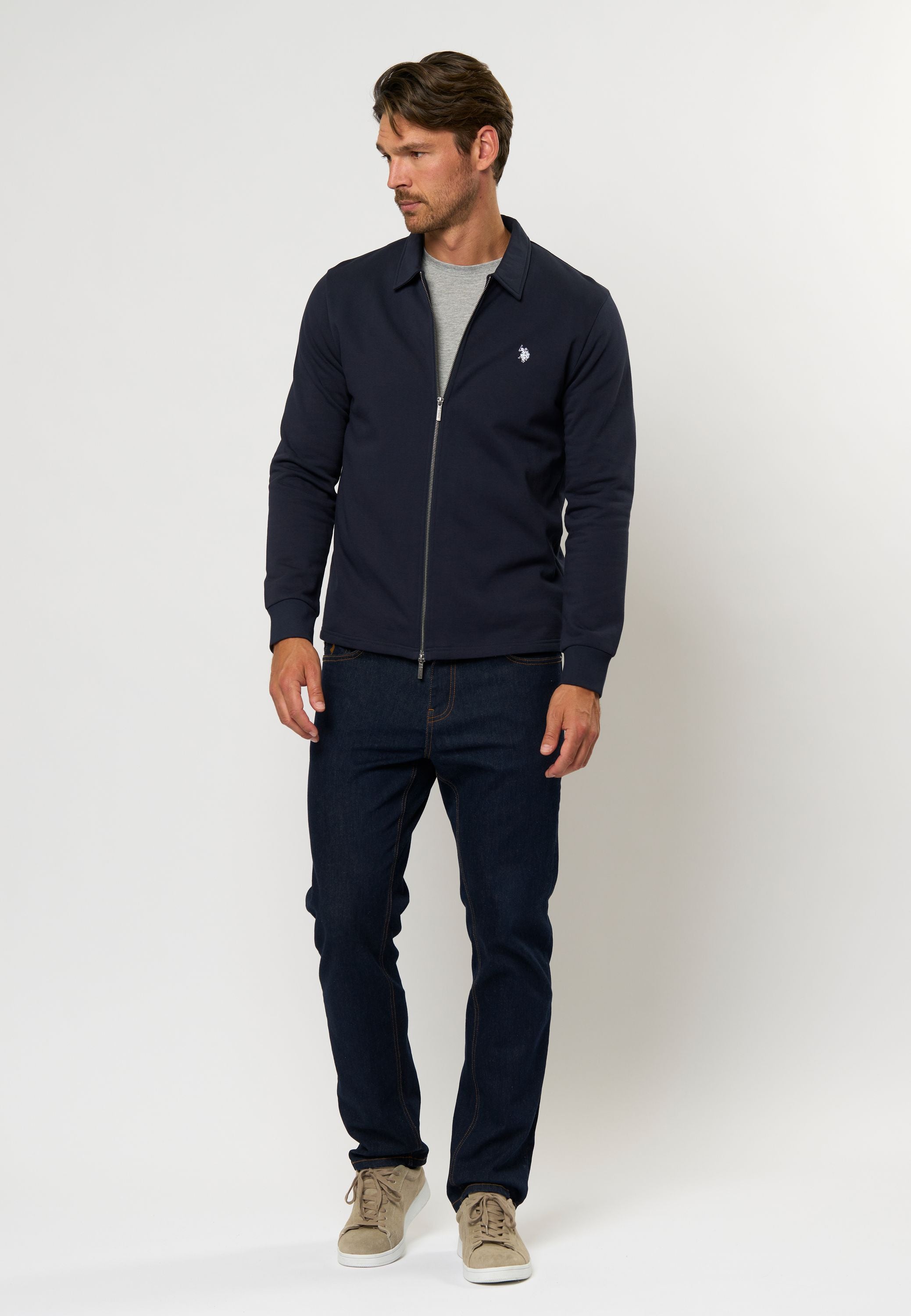 Tobey er en moderne sweatshirt med et tidløst design og sporty elegance. Den har krave og full-zip, så du nemt kan tilpasse både udtryk og komfort. Den bløde bomuldskvalitet føles behagelig mod huden og gør den velegnet til brug året rundt. Det broderede logo på brystet giver et diskret, men karakteristisk finish.