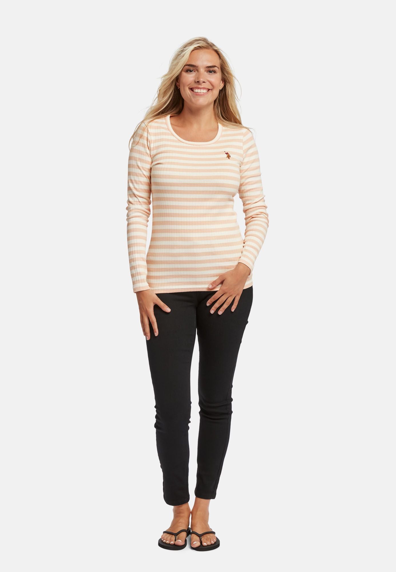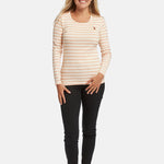 Chanett er en moderne langærmet T-shirt med rund hals og sofistikerede striber. Vores Chanett Tee i de friske forårsfarver har en bred 9x2 rib og vores logo broderet i farver på brystet. Chanett er et must-have i enhver kvindes garderobe og kan bruges alene eller under en blazer for lidt spil.