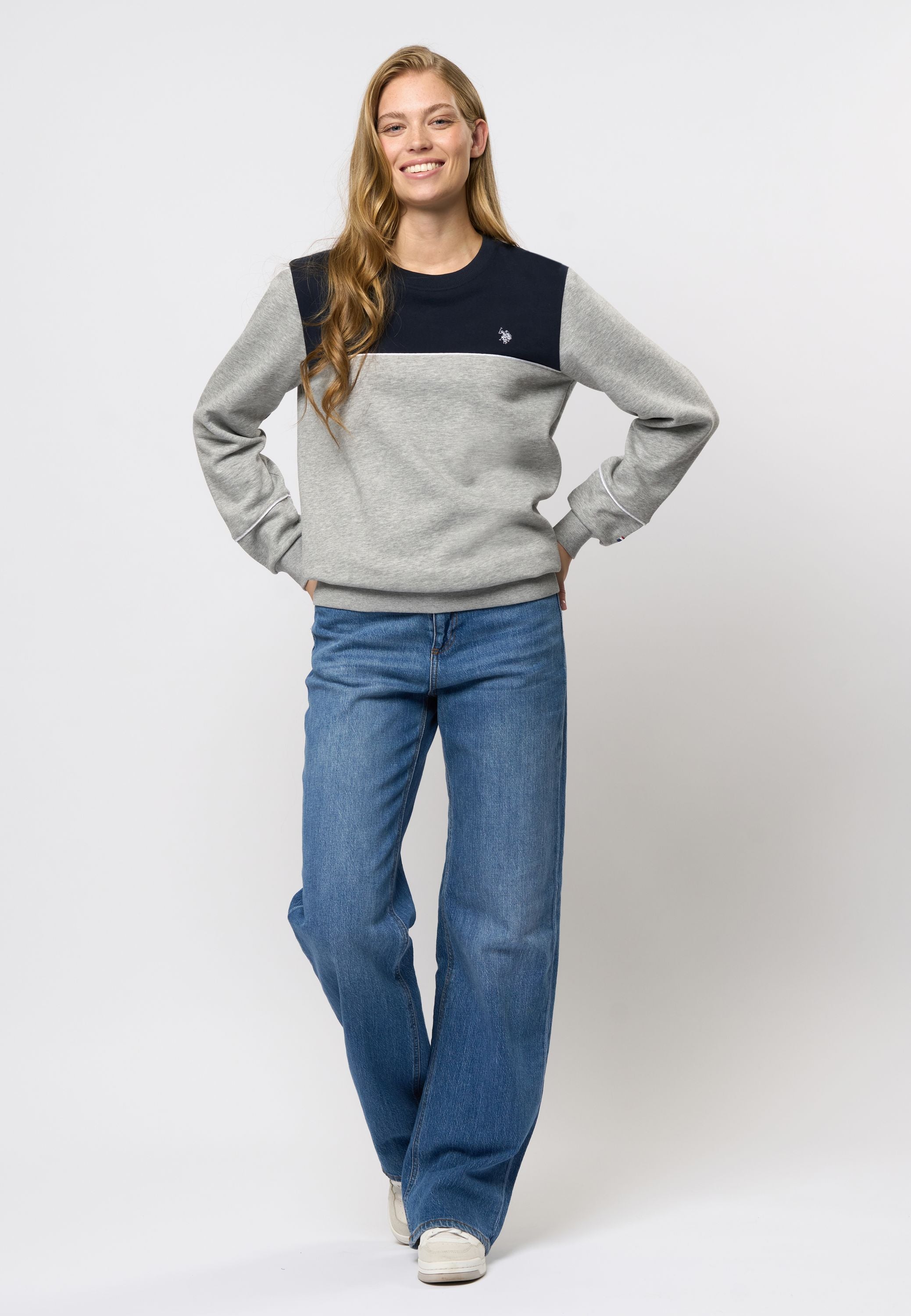 Kora er en sporty sweatshirt med et afslappet udtryk og et feminint twist. Den er designet med en markant brystpanel og kontrastbånd ved skuldrene, der giver en moderne silhuet. Ribkanter ved hals, ærmer og bund sikrer en god pasform, mens de broderede logo- og farvedetaljer tilføjer et genkendeligt finish