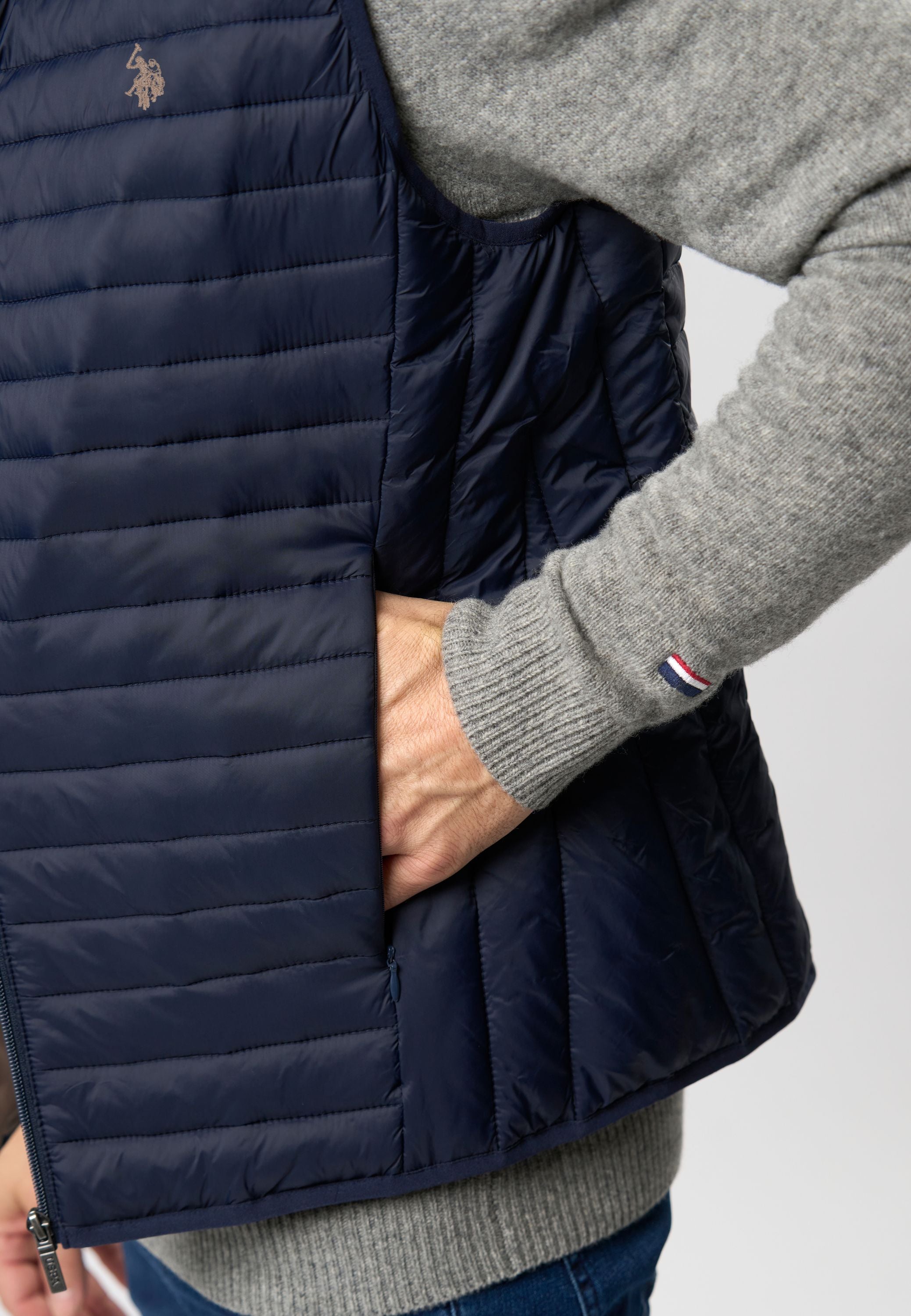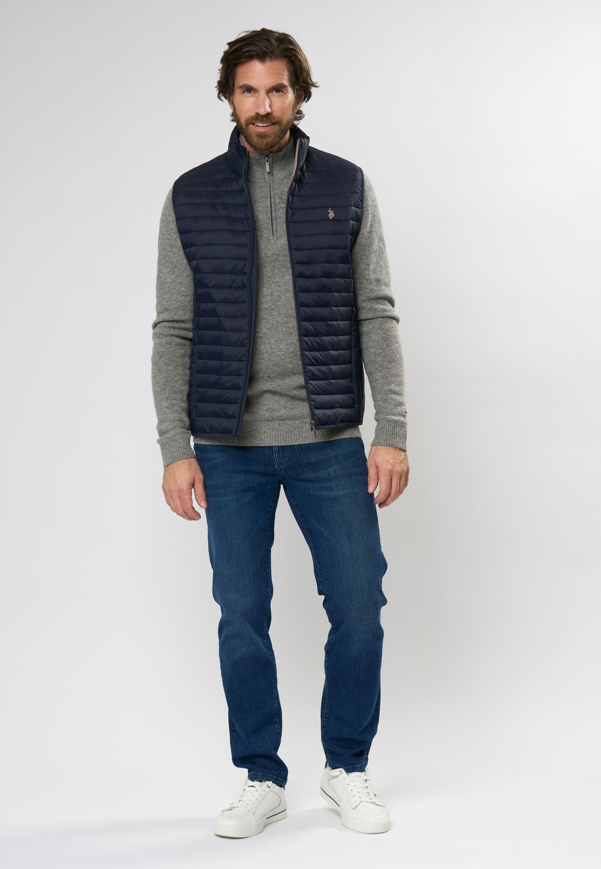 Maks er en stilren og alsidig vest, der er skabt til at give et moderne og funktionelt udtryk. Med sin lette konstruktion og en praktisk lynlås foran er Maks ideel som et ekstra lag på kølige dage. Det minimalistiske design fremhæves af det diskrete logo på brystet, som tilføjer en subtil elegance. Perfekt til både hverdagsbrug og afslappede lejligheder, kan Maks bæres over en trøje eller en skjorte for et komplet look.