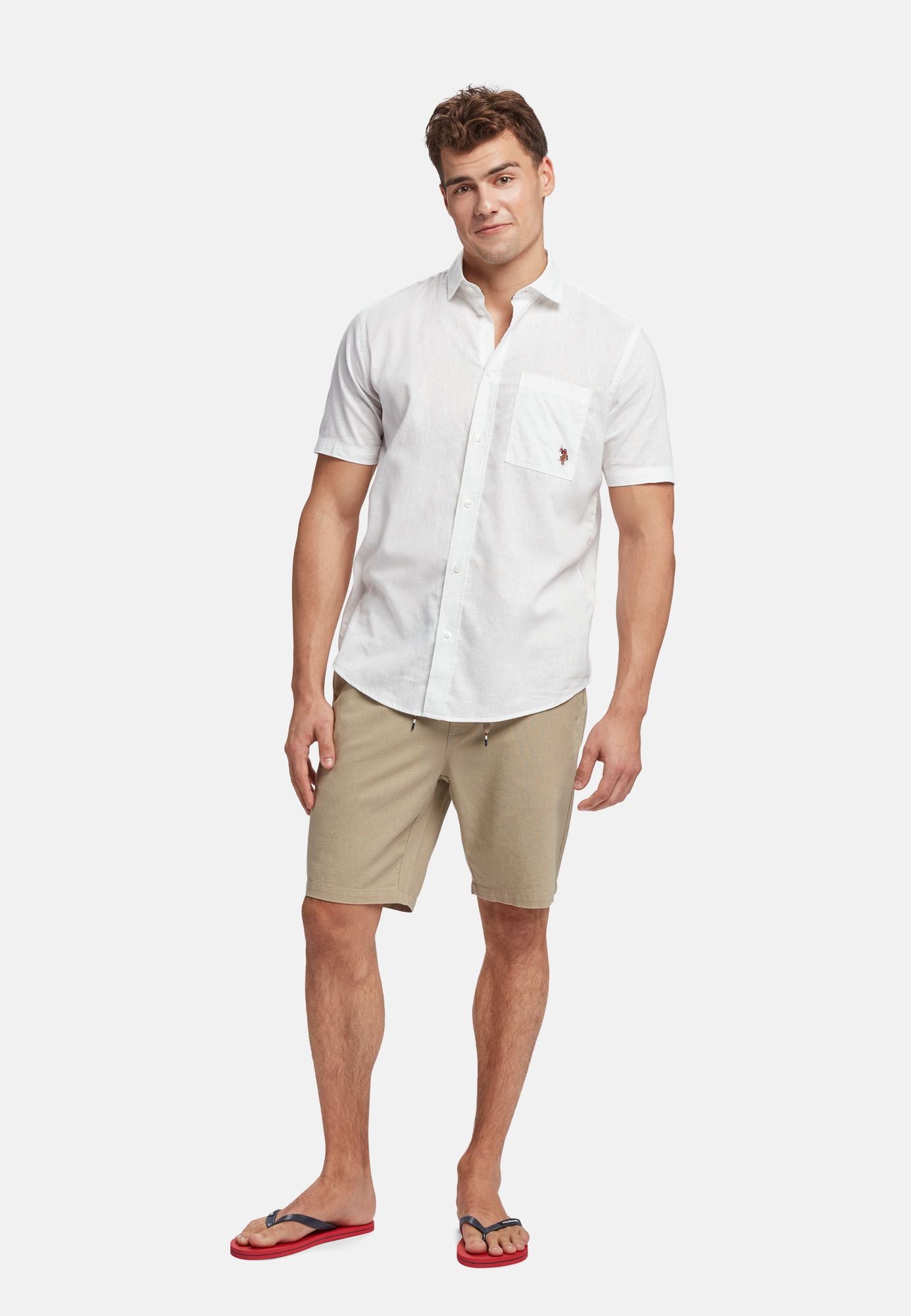 Flori er vores hørskjorte med korte ærmer. Den er fremstillet i en blanding af hør og bomuld, som gør den super behagelig at have på og giver en let fornemmelse. Flori er en tynd skjorte, som er perfekt til brug hele sommeren. Den har en brystlomme med vores logo broderet på. Køb Flori sammen med vores hørbukser Ivan eller vores hørshorts Jorge for et komplet sæt – perfekt til sommeren.