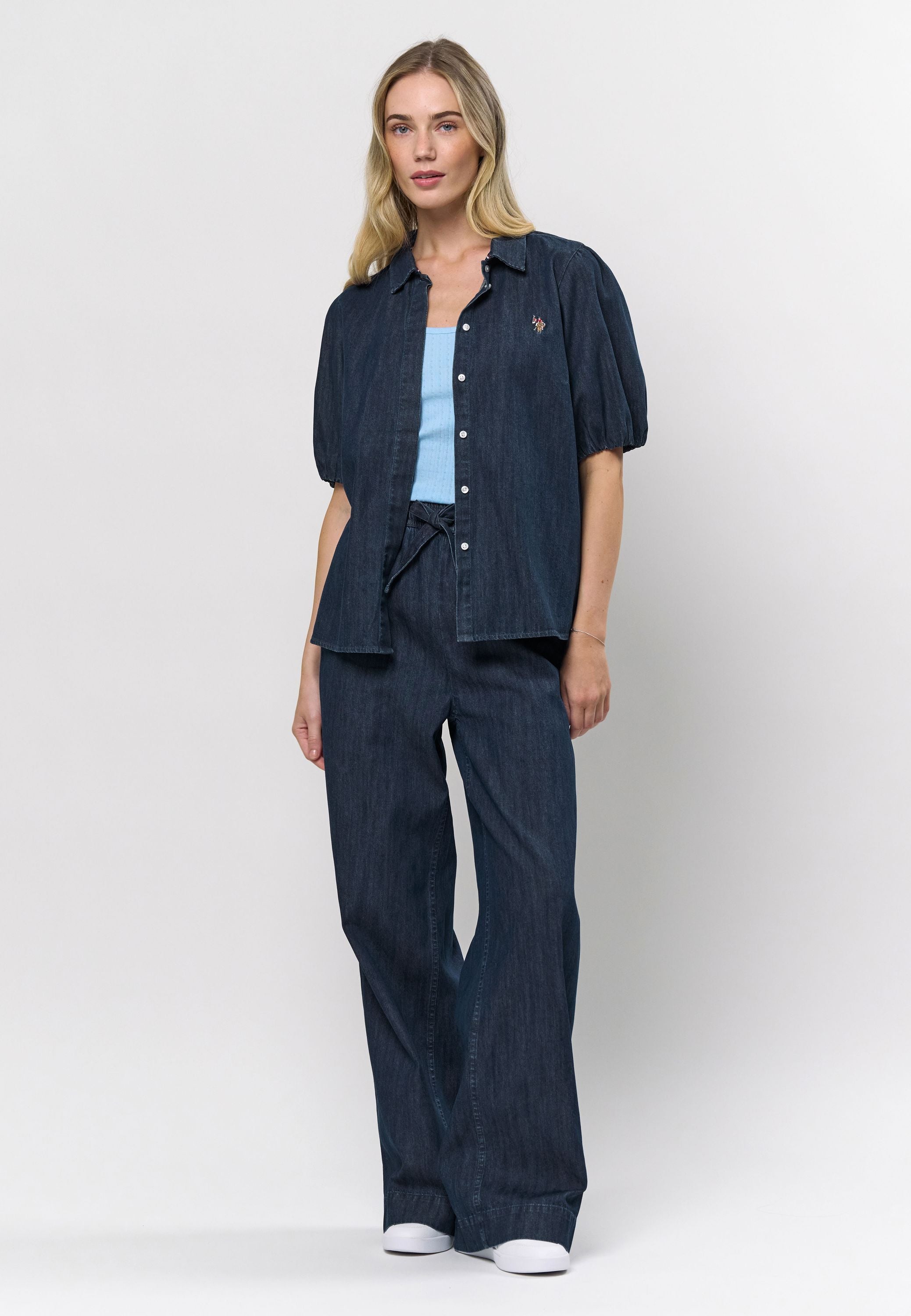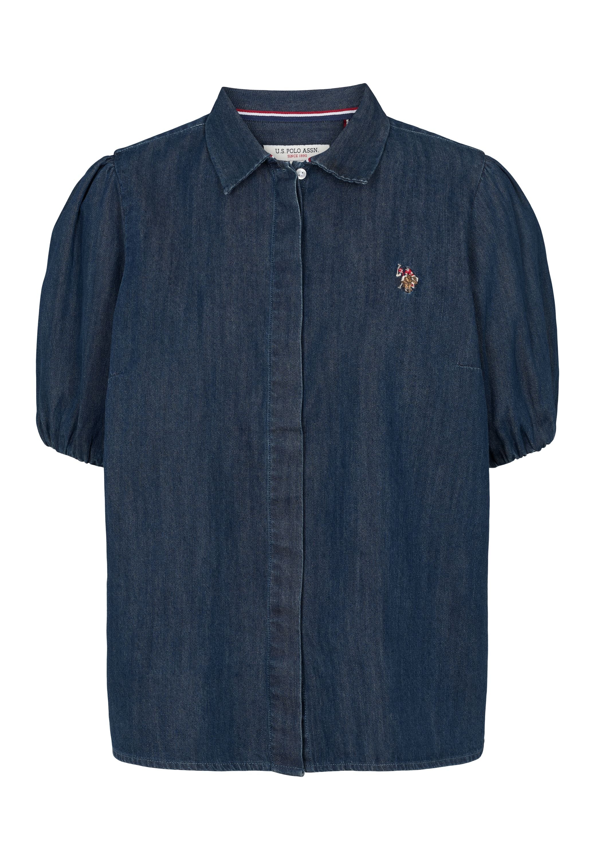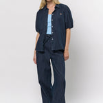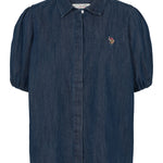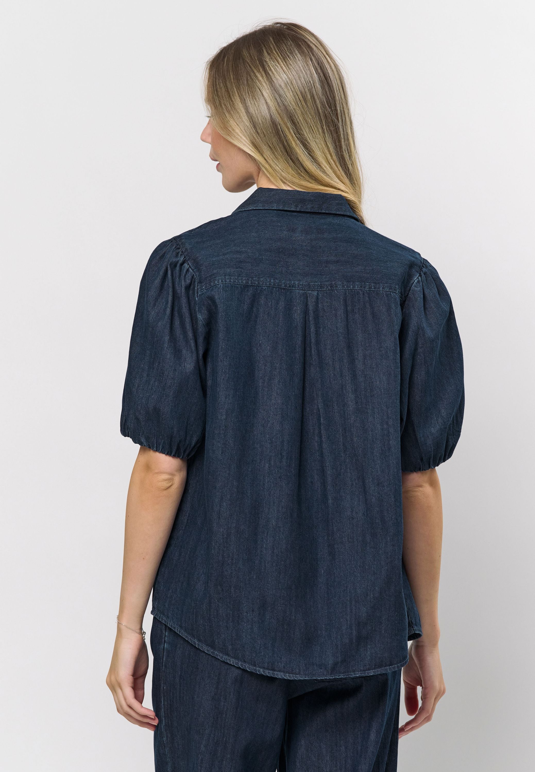 - Kortærmet denimskjorte med pufærmer