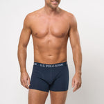 Dette sæt af U.S. Polo Assn. mænds boxershorts tilbyder komfort og stil i én pakke. Disse boksere er lavet af blødt, åndbart stof og har et klassisk design med en behagelig elastisk linning mærket med U.S. Polo Assn. logo. Perfekt til hverdagsbrug, denne pakke sikrer, at du holder dig komfortabel hele dagen lang.
