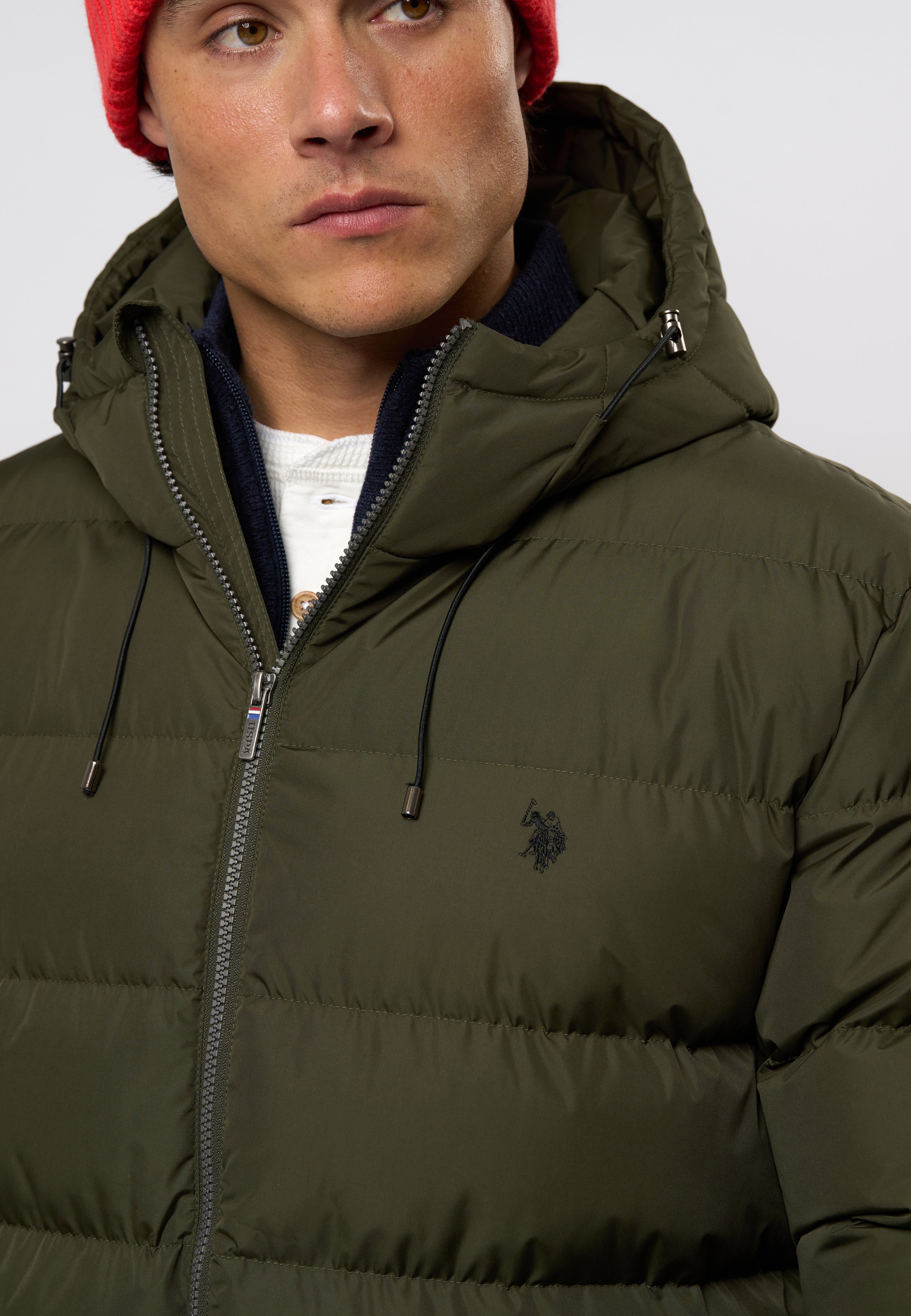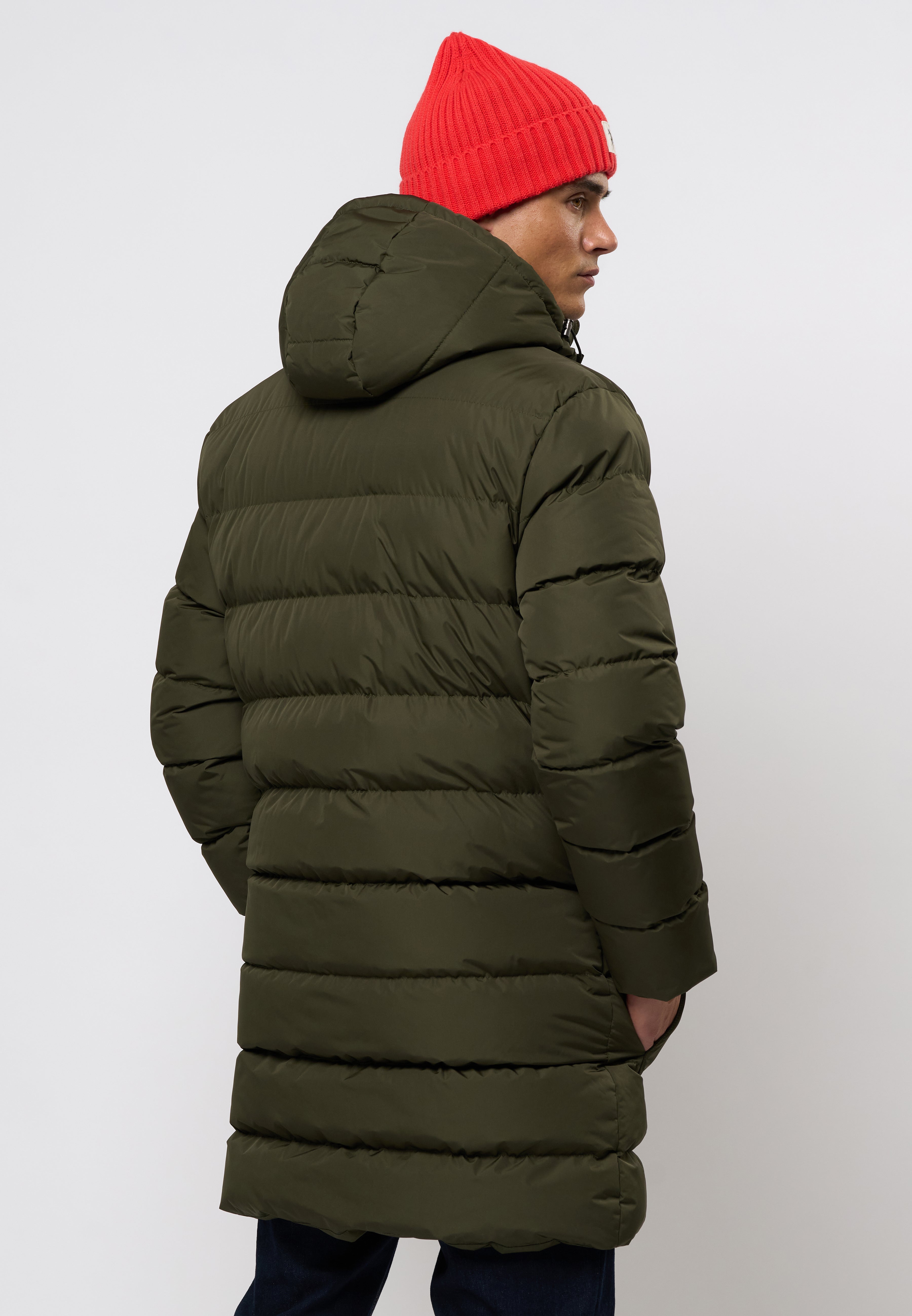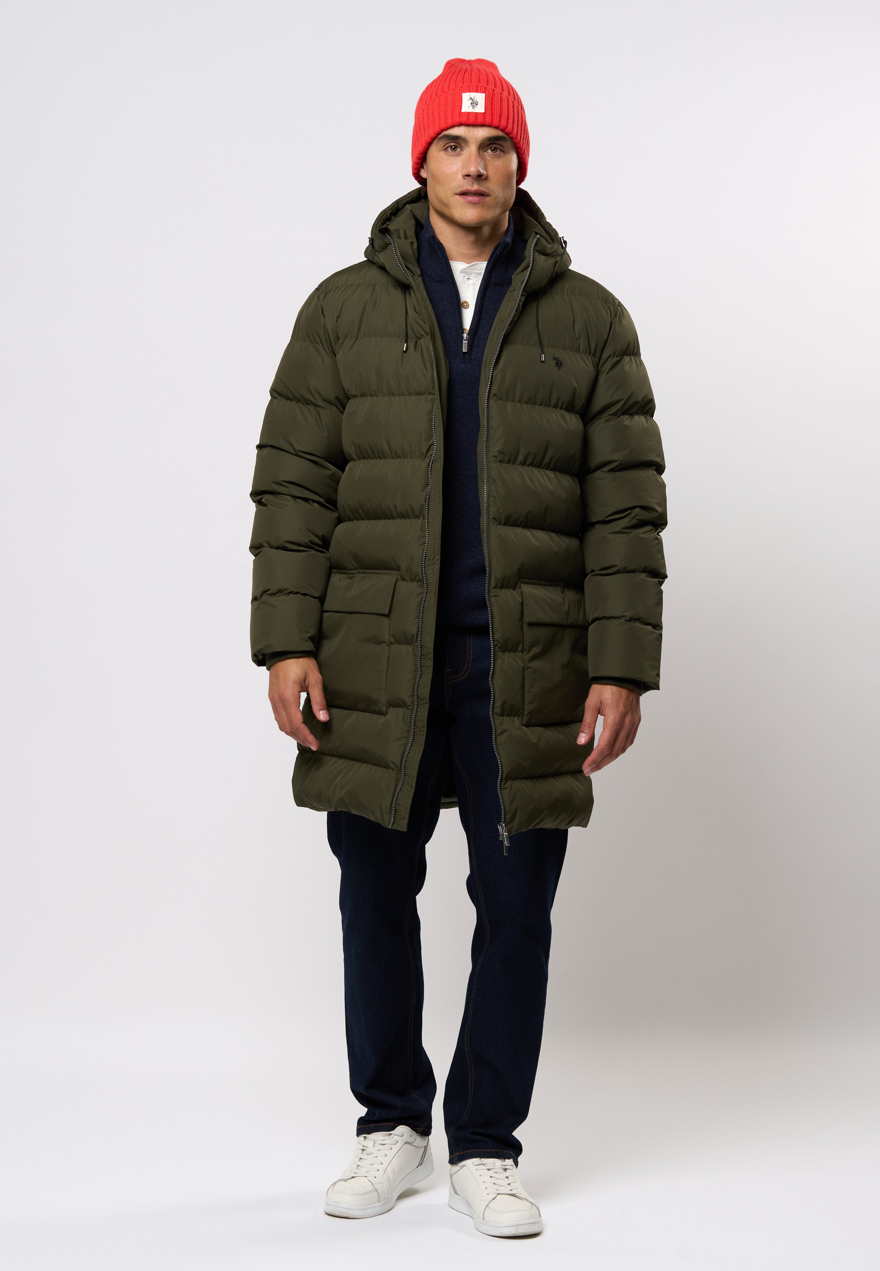 Albert er en lang og isolerende vinterjakke designet til kolde dage. Den brede quiltning og høje krave giver effektiv varme, mens den justerbare hætte og skjulte ribmanchetter beskytter mod vind og vejr. Jakken har en praktisk 2-vejs lynlås, der gør det nemt at justere åbningen. De store frontlommer med klap samt en indvendig lomme giver god opbevaringsplads, og det broderede logo på brystet fuldender det rene, sporty look.