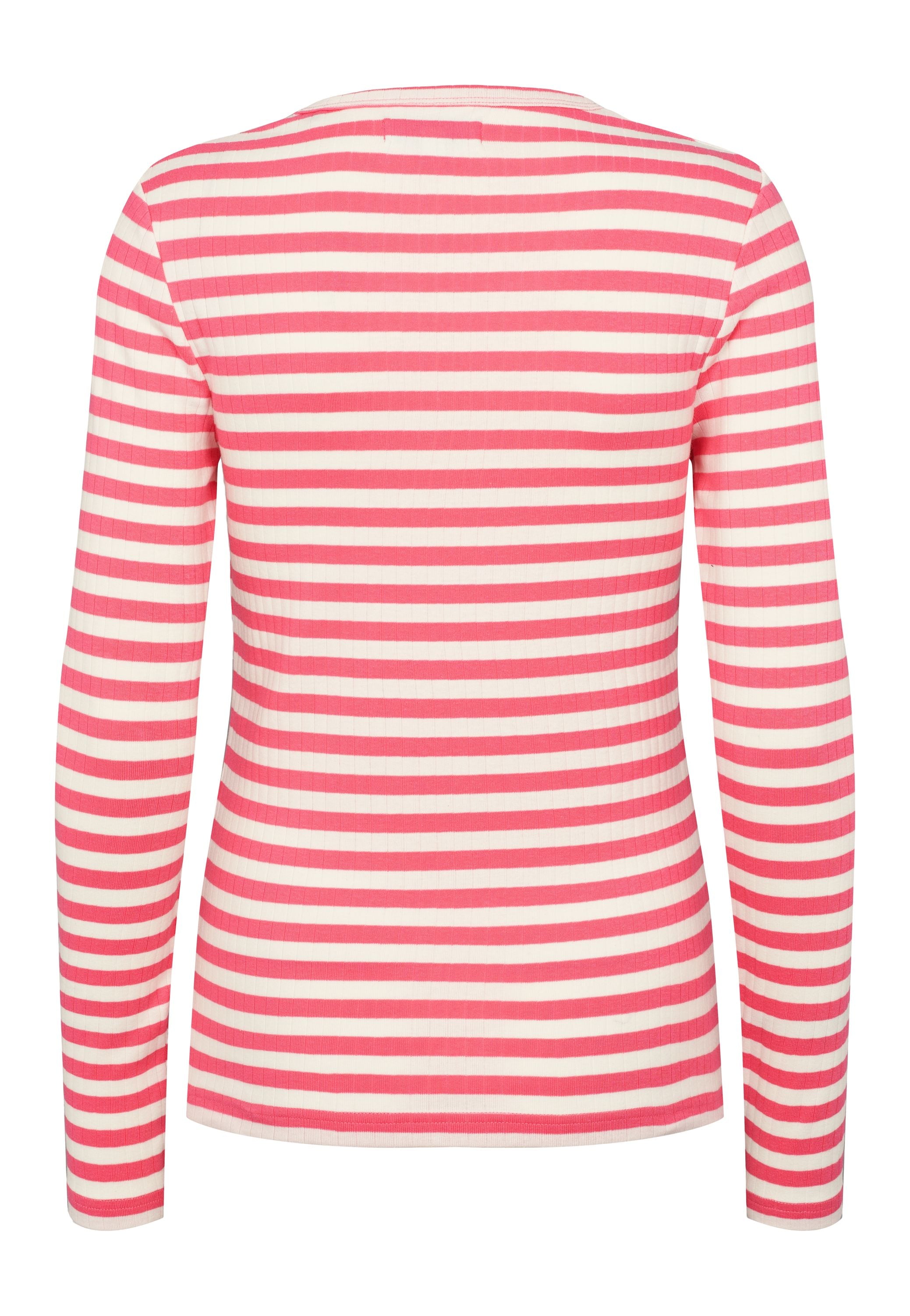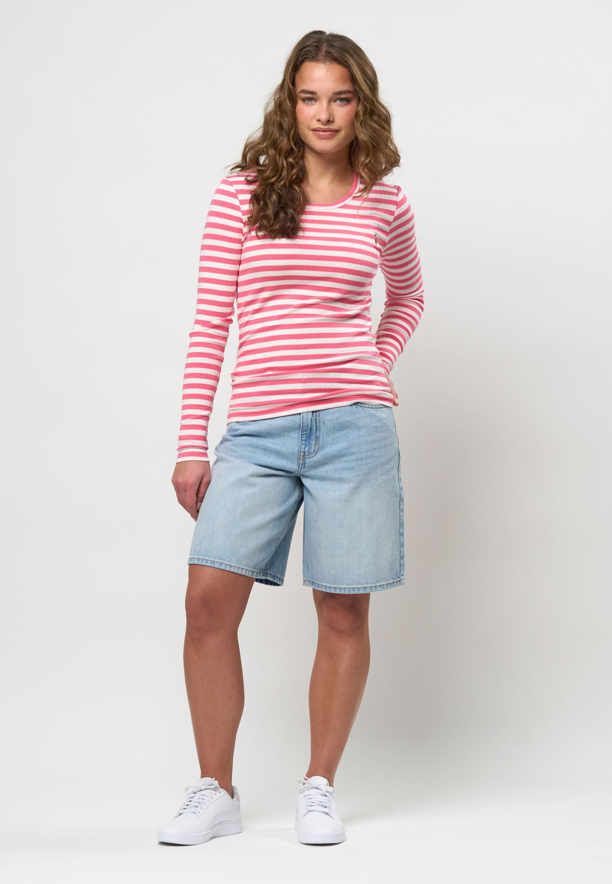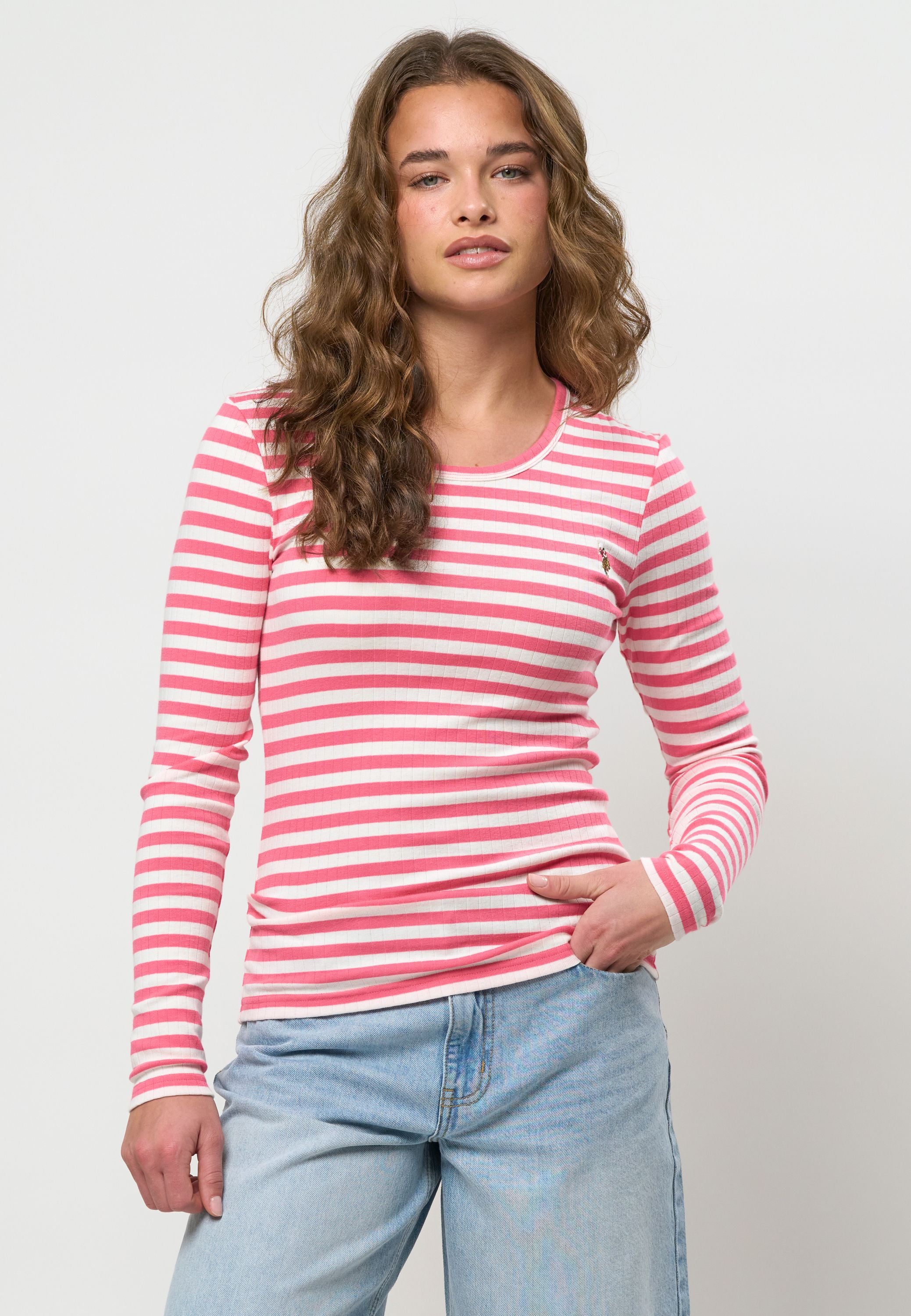 Chanett er en moderne langærmet T-shirt med rund hals og sofistikerede striber. Vores Chanett Tee har en bred 9x1 rib og vores logo broderet i farver på brystet. Chanett er et must-have i enhver kvindes garderobe og kan bruges alene eller under en blazer for lidt spil.