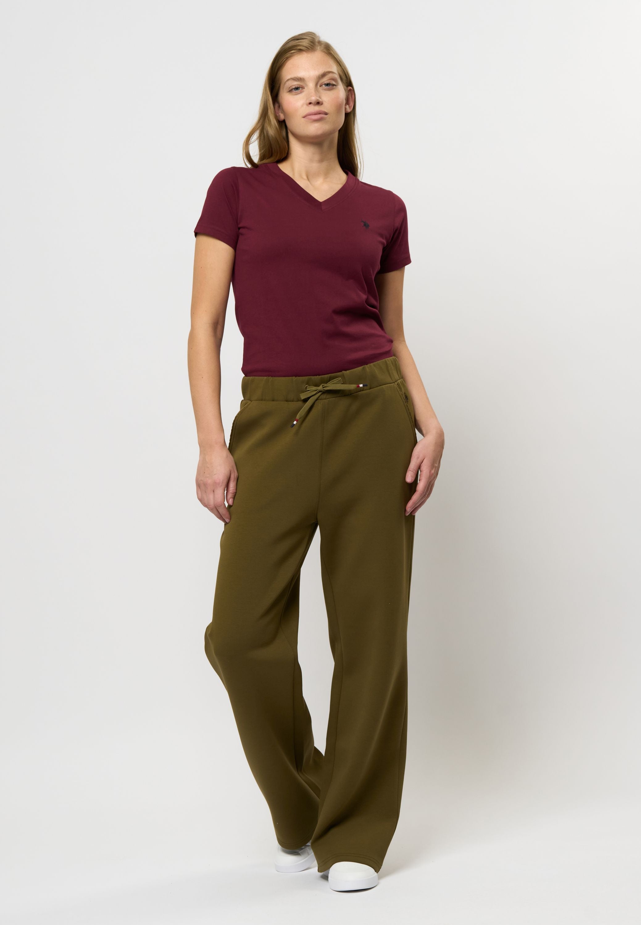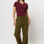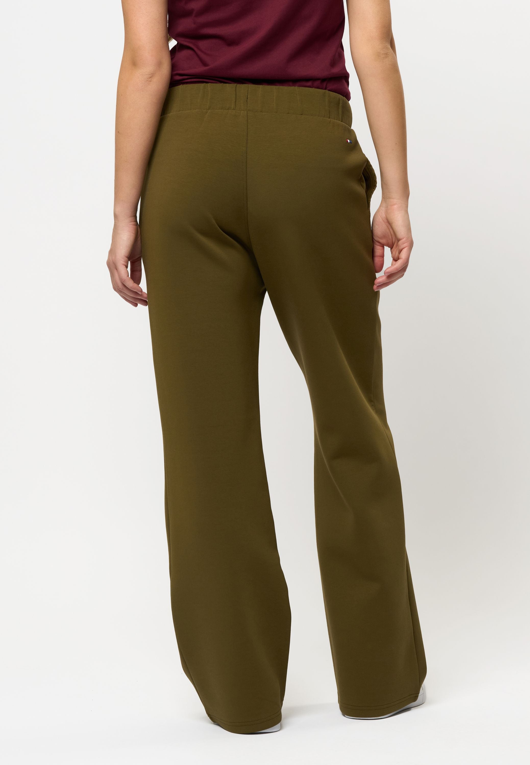 Kaisa er sweatpants med en afslappet attitude og et flatterende, bredt ben, der giver et moderne og komfortabelt look. Modellen er lavet i en glat, blød jerseykvalitet med masser af stræk, hvilket gør dem perfekte til både hjemmet, hverdagen eller en casual dag på farten. Taljen er elastisk med bindebånd, og bukserne har diskrete lommer i siderne samt et lille broderet logo bagpå.