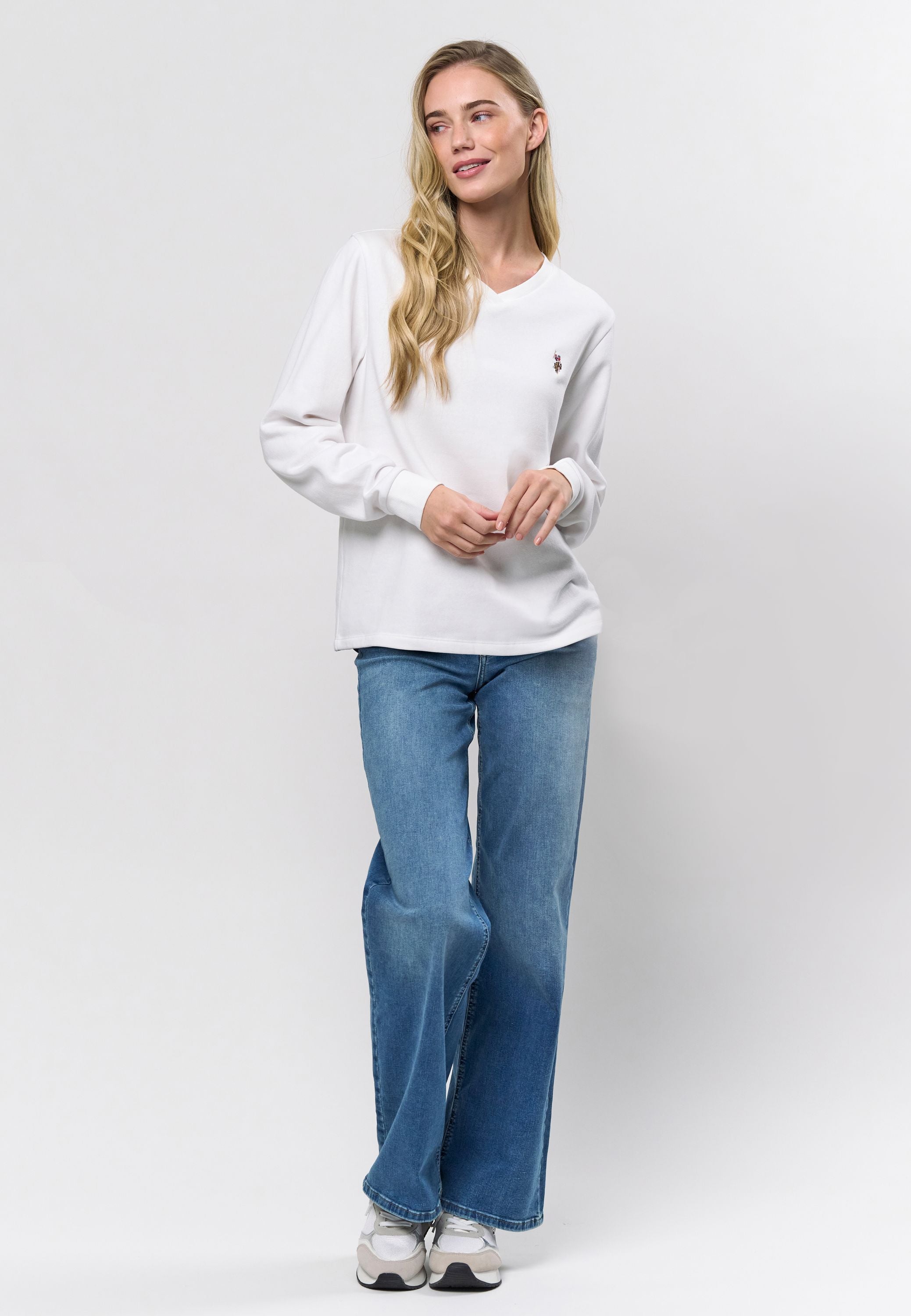 Macy er en klassisk sweatshirt med V-udskæring og et sporty twist, perfekt til afslappet hverdagsbrug. Det bløde bomuldsblend og den enkle silhuet giver en behagelig og stilren pasform. Sweatshirten har ribkant ved ærmer og talje samt vores ikoniske broderede logo på brystet, der tilfører et elegant, genkendeligt udtryk.