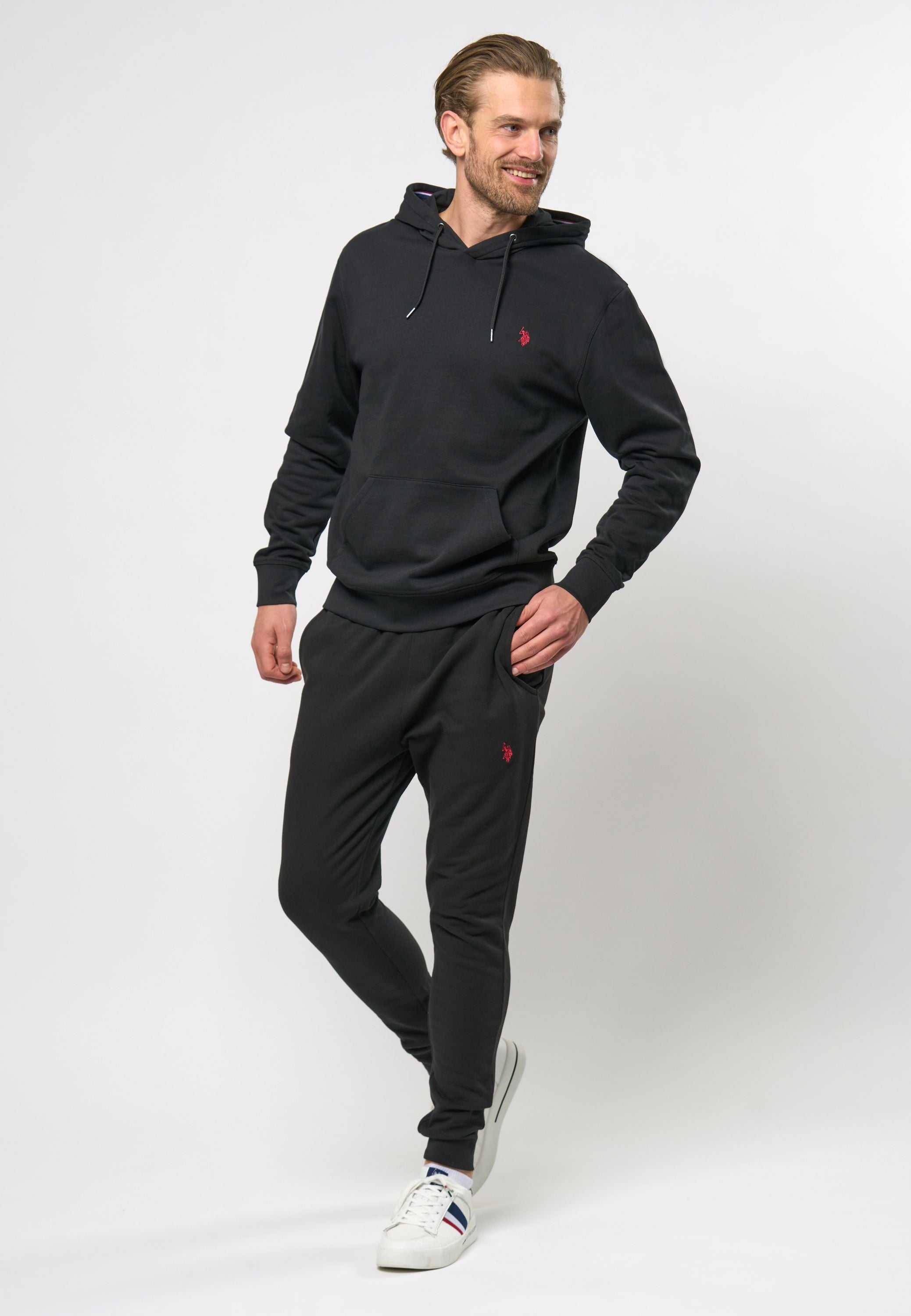 Brayden er en helt klassisk hoodie til herre. Den er fremstillet i 100% Bomuld og er derfor super blød og behagelig at have på. Brayden har hætte med snøre og rib ved bund og ærmer. Den har også vores genkendelige logo broderet på brystet samt en stor lomme forneden. Brug den sammen med vores matchende sweatpants Ashlar for et komplet sæt.